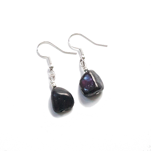 Raw Shungite + Silver Earrings